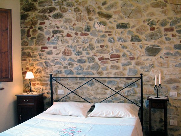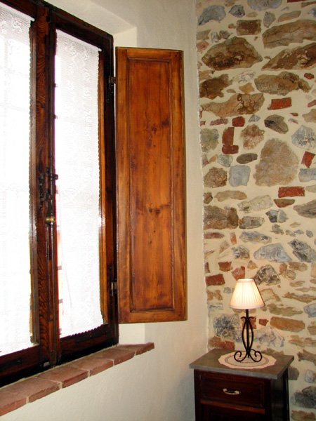 I really like the little touches the builders and carpenter added: painting the back of the main door in a warm yellow, covering the corner of the kitchen wall with bricks, treating the wooden beams to make them all the same beautiful colour they were 100 years ago, and the stone wall in the bedroom is just beautiful I think (but hey, I might be a bit biased…). It looks so Tuscan!!!