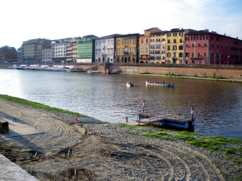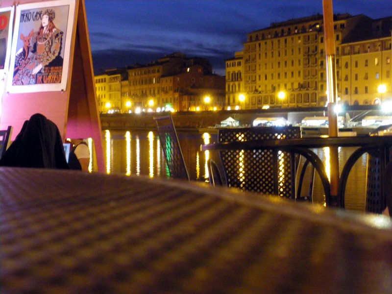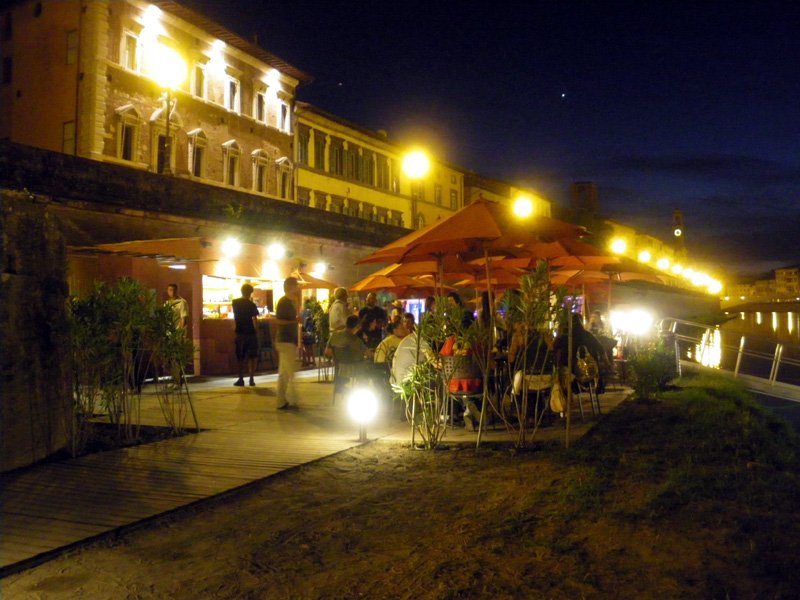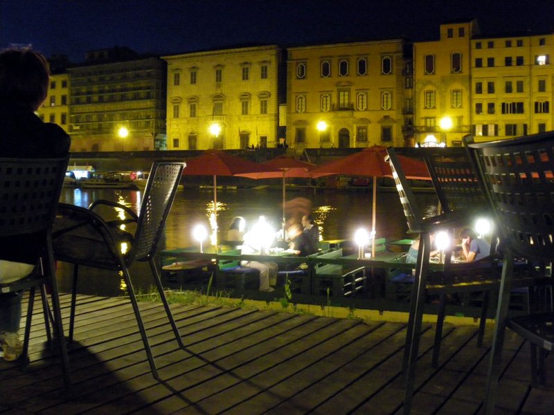 Yesterday, after a long day of work, we went to a new bar that has just opened right on the river bank in Pisa: Argini e Margini. To get to the bar you need to go down to a small sandy beach by the river Arno. The walk provides a very unusual perspective on the buildings of the Lungarno and the atmosphere is really cool. It is a “different Pisa”, in a way.